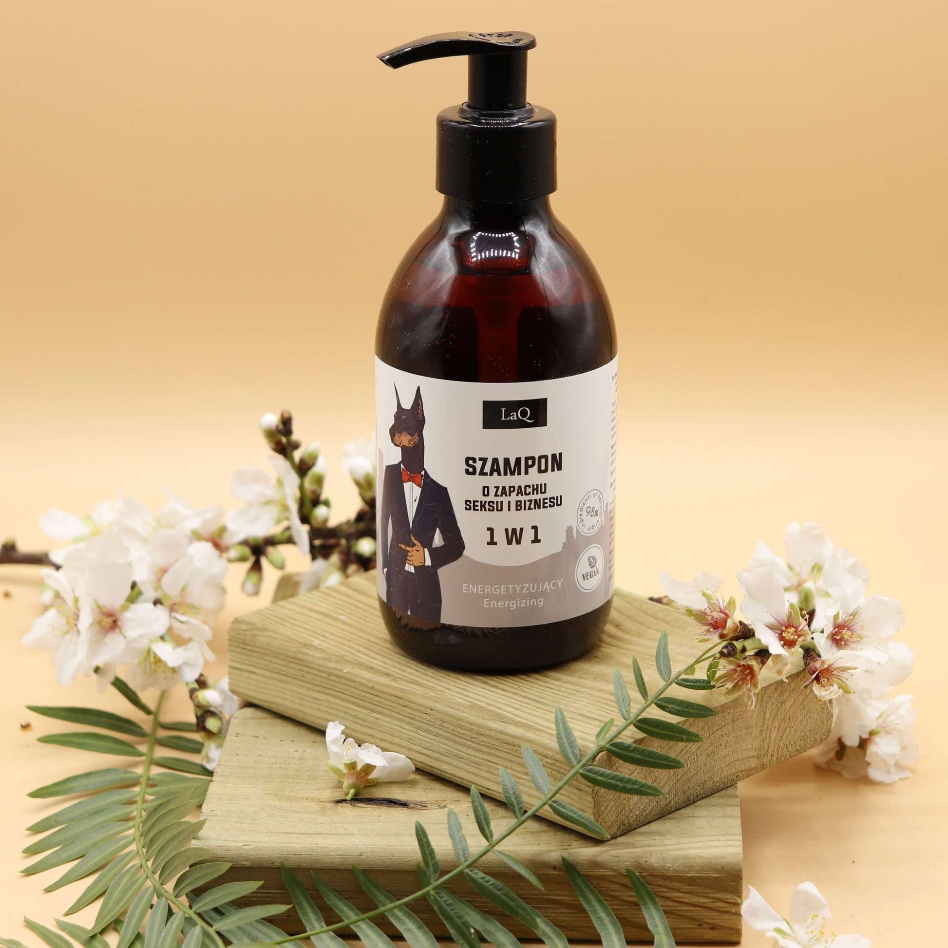 Champú natural con extractos de pimienta negra, limón, menta, romero y té verde.