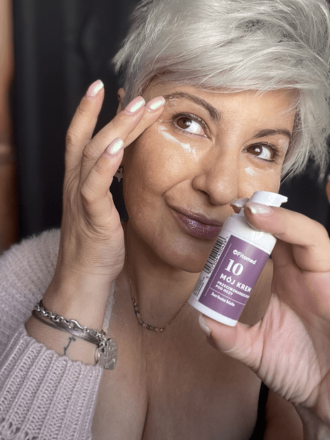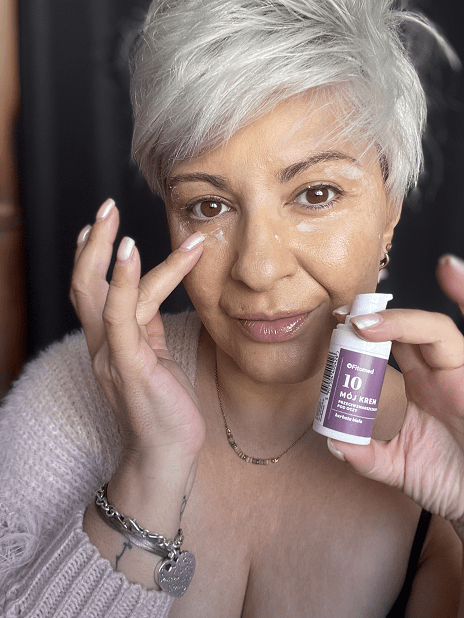 Aplica una pequeña cantidad de la crema sobre la piel limpia del contorno de ojos, nariz y boca.