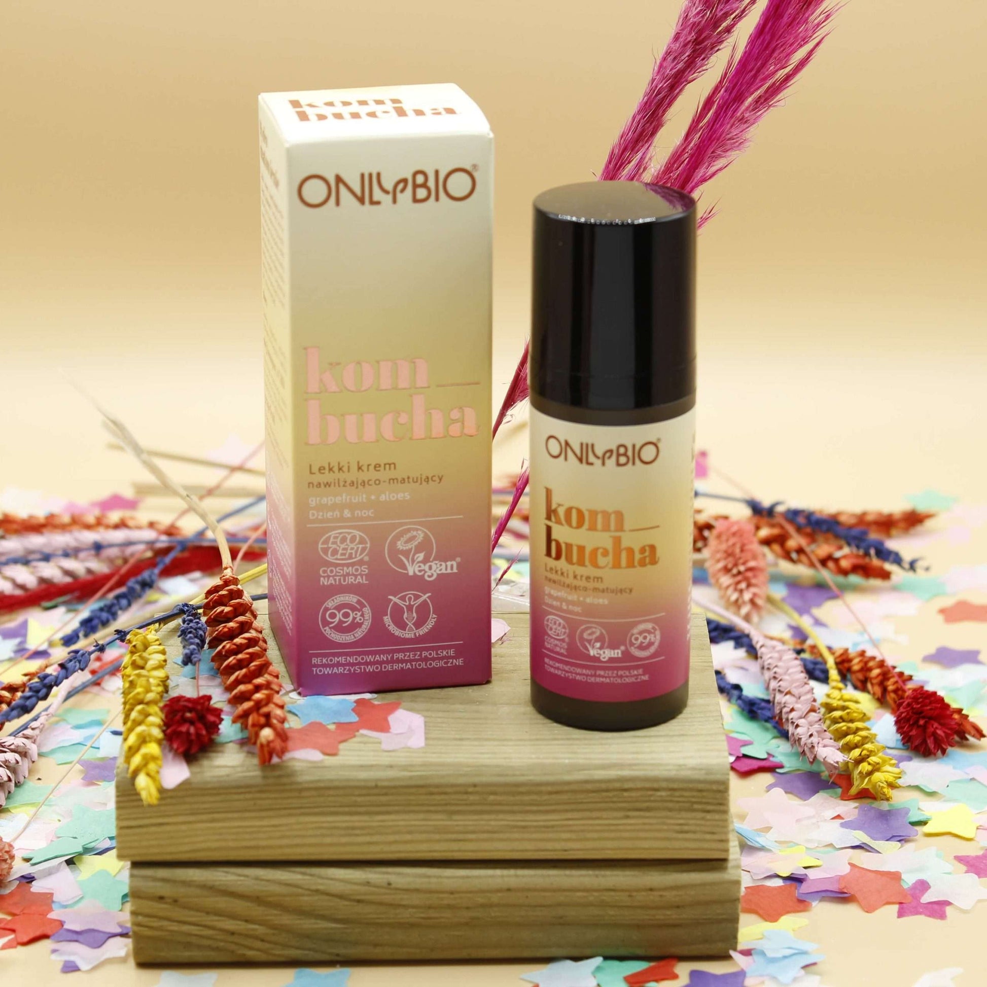 No solo kombucha. Además de la kombucha, la crema hidratante y matificante ligera OnlyBio también contiene otros ingredientes naturales que cuidan tu piel.