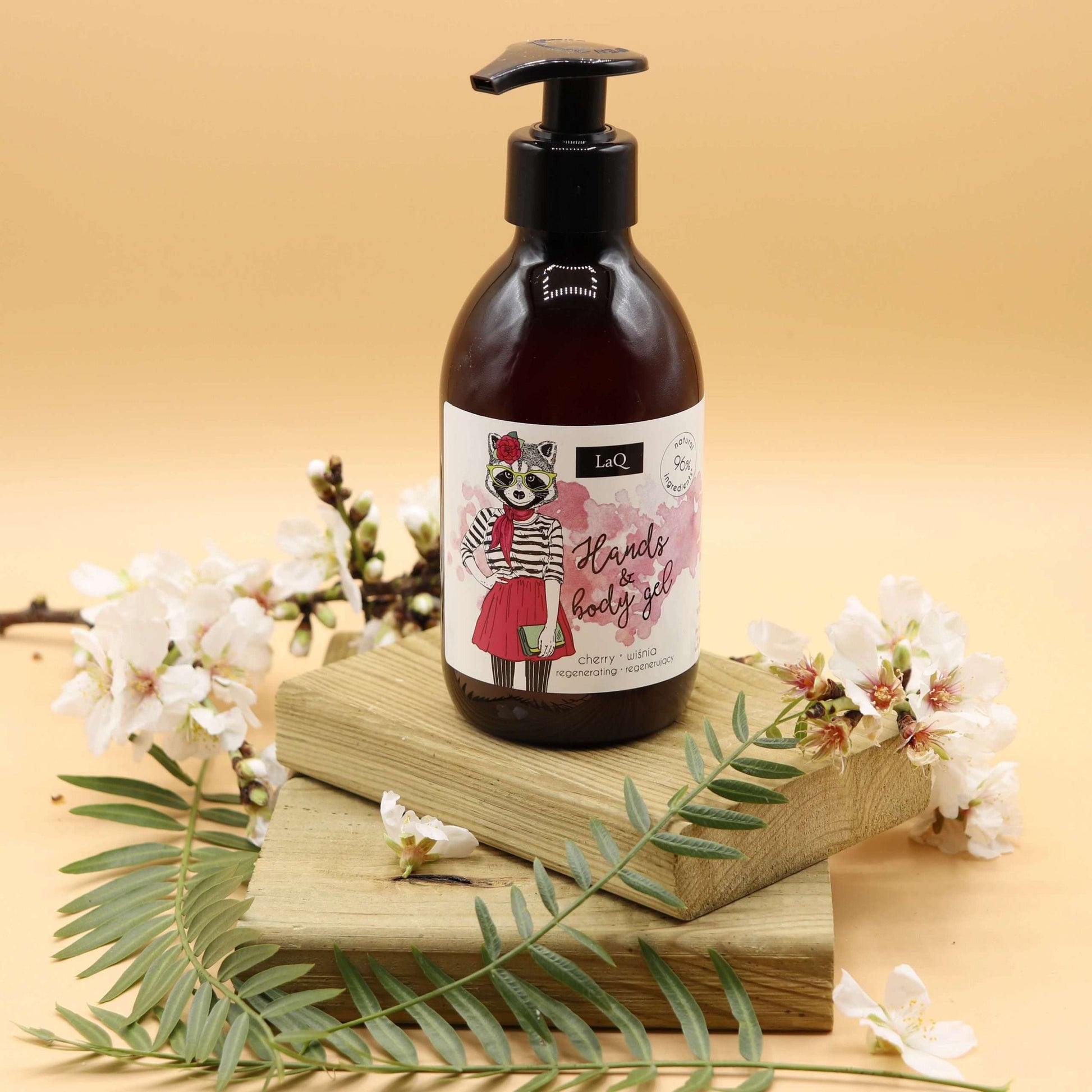 El gel de baño natural para cuerpo y manos, con aroma a cereza, a base de sustancias limpiadoras de origen vegetal, ha sido diseñado para limpiar suavemente la piel.