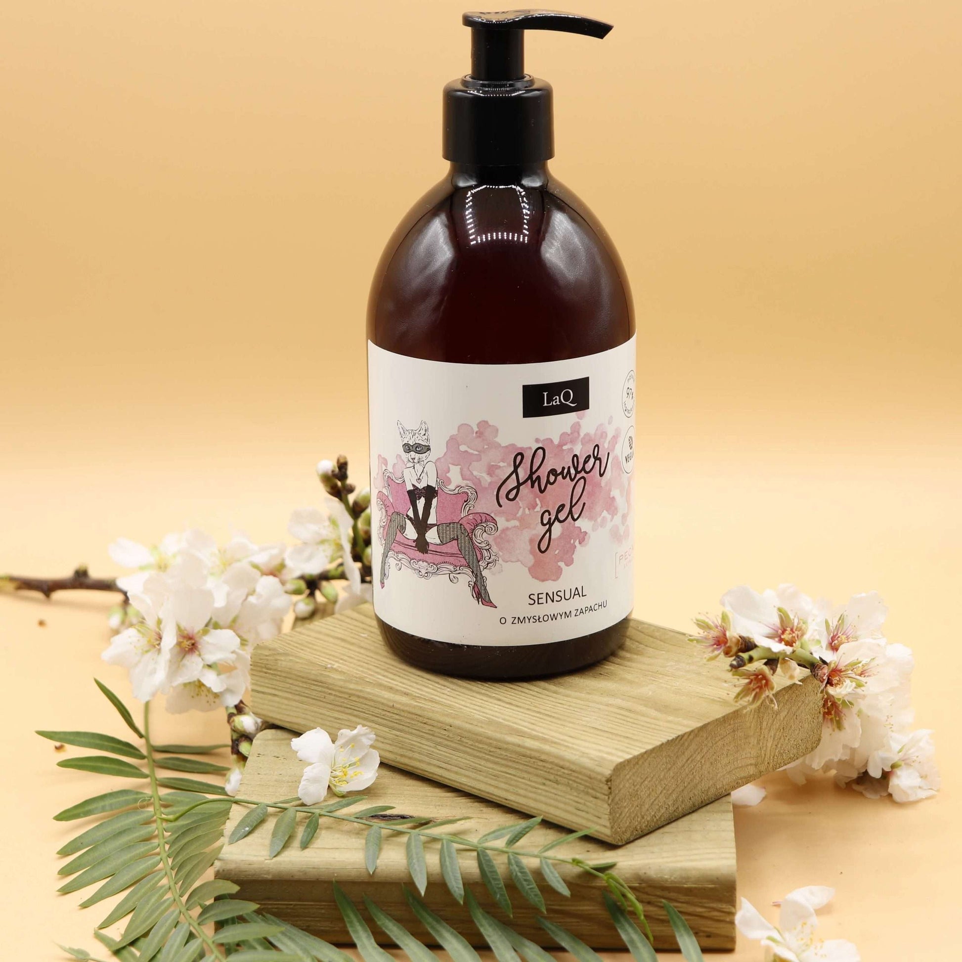 Gel de baño vegano para manos y cuerpo con aroma perfume elegante de peonía, que hidrata tu piel y estimula tus sentidos.