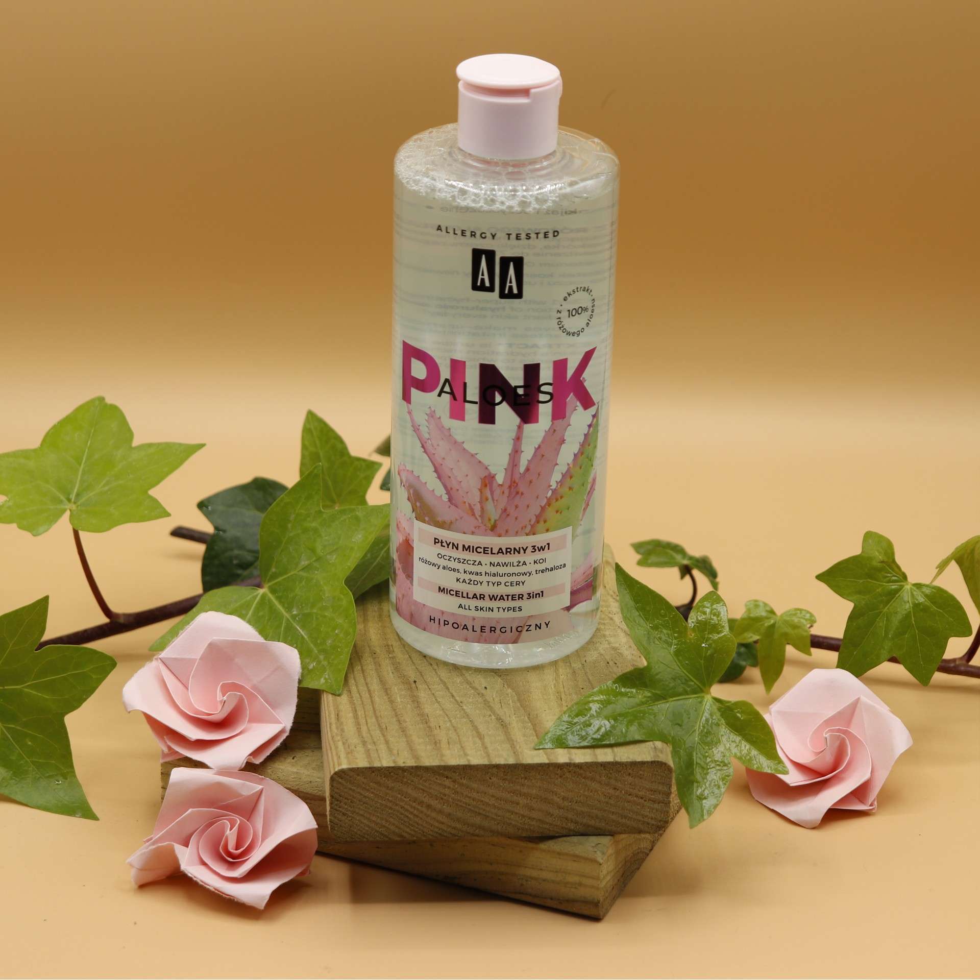 Fluido micelar 3 en 1: Fluido micelar 3 en 1 con extracto de aloe rosa superhidratante y regenerador, potenciado por el efecto hidratante del ácido hialurónico y la trehalosa (azúcar natural).